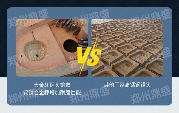 大金牙錘頭本體如同鑲牙一般鑲鑄極其堅(jiān)硬的鎢鈦合金齒塊尤其適合高硅、堅(jiān)硬、強(qiáng)磨蝕性石灰石。