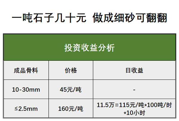2017年初,河南省滎陽市賈峪鎮(zhèn)一采石場業(yè)主看到了當(dāng)?shù)厥袌?.5mm以下細(xì)砂市場緊缺,價格一再上漲,幾乎可以到達(dá)200元/噸的市場機(jī)遇,這類細(xì)砂主要供應(yīng)砂漿站,果斷決定進(jìn)入該領(lǐng)域——以一噸45元的價格從當(dāng)?shù)仄渌蠄鲑徺I10-30mm的石子,以鄭州鼎盛公司生產(chǎn)的YM預(yù)磨機(jī)為主機(jī),對10-30mm的石子進(jìn)行制砂,成品為2.5mm以下的細(xì)砂,含粉率在10%以下,噸售價在160元/噸,而且供不應(yīng)求。