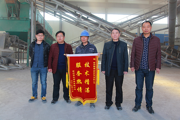 圖為客戶對該套制砂設(shè)備制砂效果滿意,向鄭州鼎盛公司贈送錦旗