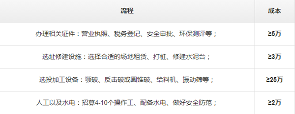 以上是從市場統(tǒng)計數(shù)據(jù)分析得來的開辦石料廠流程與需要的成本,總計約需要35萬以上的投資成本,不同的規(guī)模、產(chǎn)量需求決定了不同的成本,如果您想獲取更詳細(xì)的專屬石子加工廠每噸成本、方案分析,可點(diǎn)擊在線咨詢 ,由廠家專業(yè)人員在線為您解答。