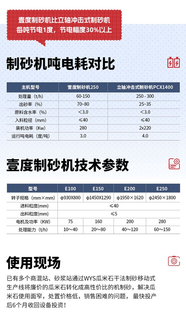 瓜米石制砂專用制砂機(jī)(壹度制砂機(jī))與市面上傳統(tǒng)的沖擊式制砂機(jī)的區(qū)別主要是成砂率、顆粒級(jí)配、含粉量以及用電量。