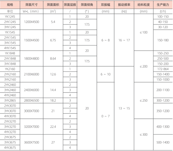 YK圓振動篩介紹:YK圓振動篩為圓形軌跡運(yùn)動,是一種多層數(shù),新型高效振動篩。是專門為采石場篩分料石設(shè)計的,也可供選煤、選礦、建材、電力及化工部門等作產(chǎn)品分級用,YK(F)系列為國內(nèi)新型機(jī)種,該機(jī)采用塊偏心激振器及輪胎聯(lián)軸器,具有結(jié)構(gòu)先進(jìn)、激振力強(qiáng)、振動噪音小、易于維修、堅固耐用等特點(diǎn)。