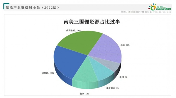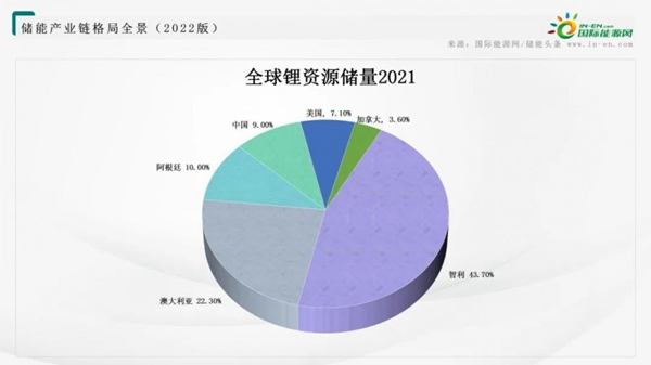 2021年較新數(shù)據(jù)顯示,當(dāng)前世界已探明的鋰礦資源中,智利、澳大利亞、阿根廷、中國(guó)、美國(guó)5個(gè)國(guó)家儲(chǔ)量占比達(dá)到85.73%。