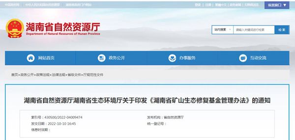 10月10日,湖南省自然資源廳、生態(tài)環(huán)境廳聯(lián)合印發(fā)《湖南省礦山生態(tài)修復(fù)基金管理辦法》(以下簡稱《辦法》)。